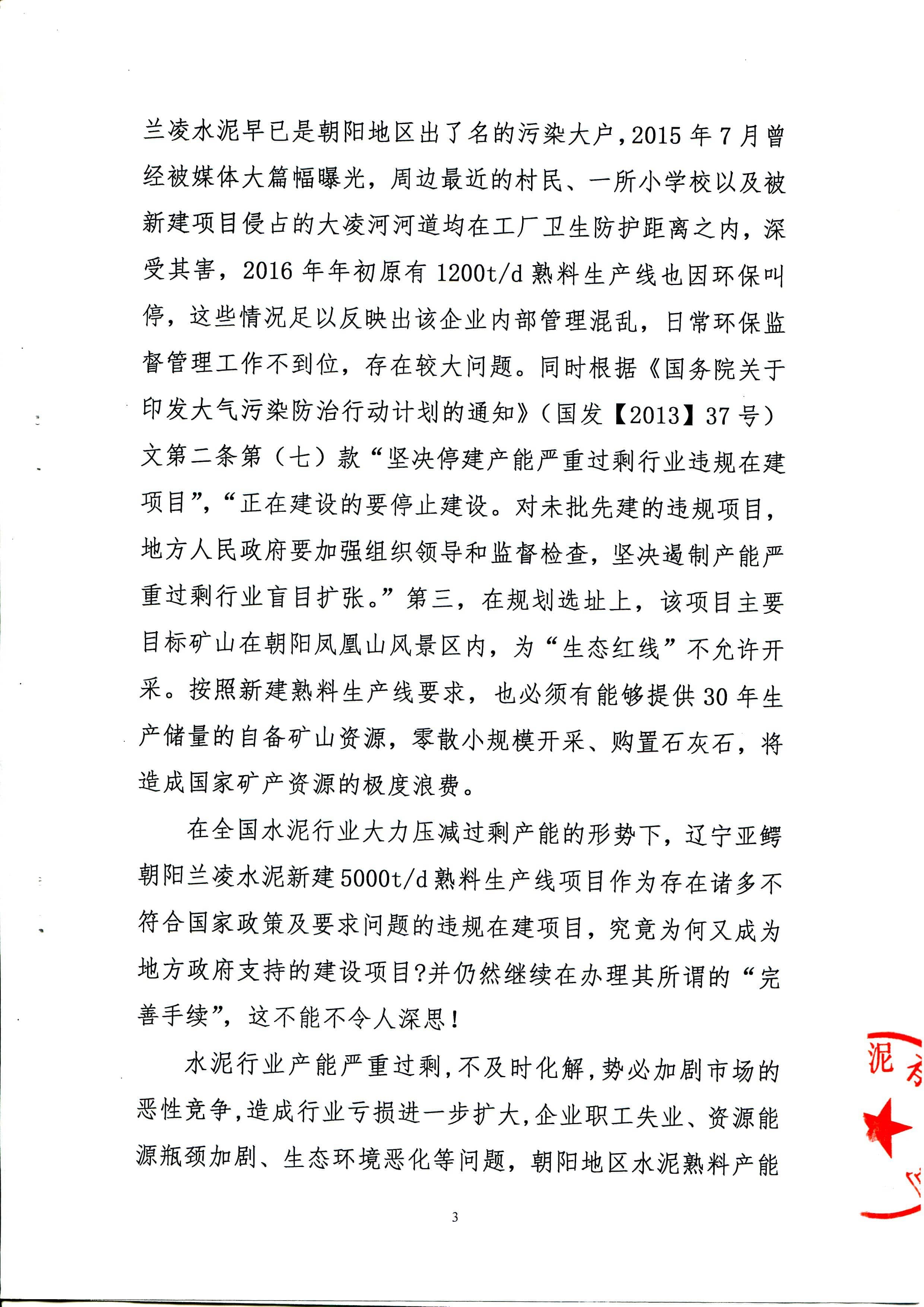 山水水泥、北方水泥、三鴿水泥、遼寧建材協(xié)會聯(lián)名舉報蘭凌水泥違規(guī)建線