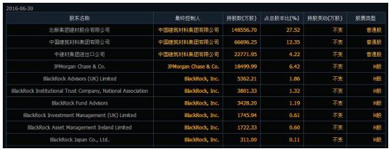 中國(guó)建材前10大股東排名,截圖時(shí)間為2016年12月26日