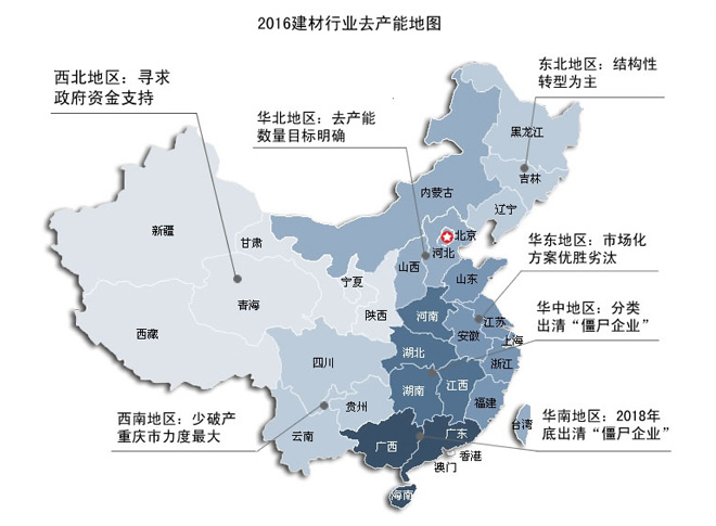 當前中國一些行業(yè)面臨著產能過剩的困境,為了化解產能過剩危機,國務院、銀監(jiān)會和地方政府分別出臺一系列政策,包括加快淘汰落后產能和其他不符合產業(yè)政策的產能、有序退出過剩產能,對僵尸企業(yè)進行治理等等。華中地區(qū)去產能的主要原則是分類出清,從已出臺的政策上來看,華中地區(qū)的政策力度比華北、華東地區(qū)偏小。各省市地區(qū)紛紛響應號召,針對區(qū)域實際情況個體定制解決產能過剩的問題。