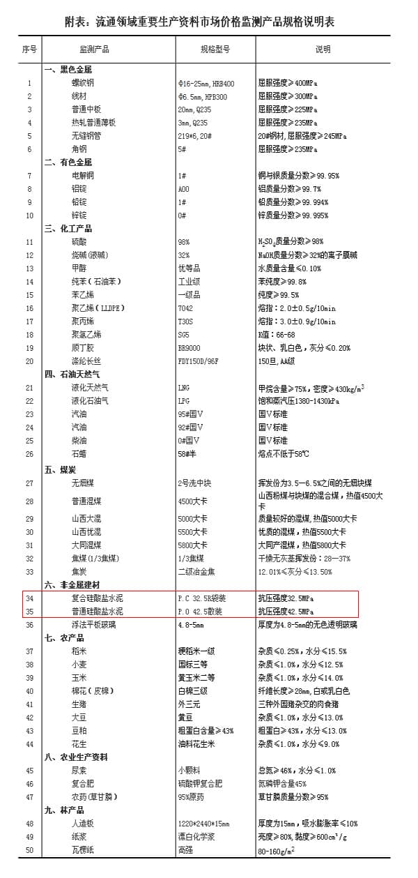 流通領(lǐng)域重要生產(chǎn)資料市場價(jià)格監(jiān)測內(nèi)容包括9大類50種產(chǎn)品的價(jià)格。類別與產(chǎn)品規(guī)格說明詳見附表。