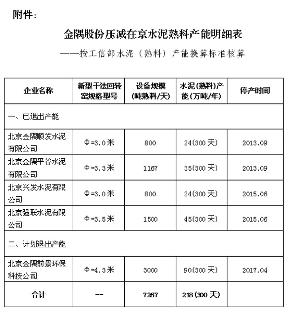 附件:金隅股份壓減在京水泥熟料產(chǎn)能明細(xì)表