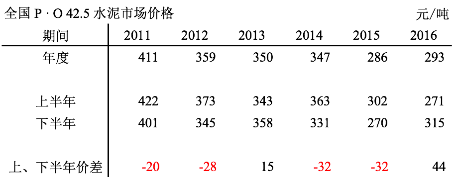 1) 水泥價(jià)格落在341元/噸,非常適中,不高不低,有彈性空間;