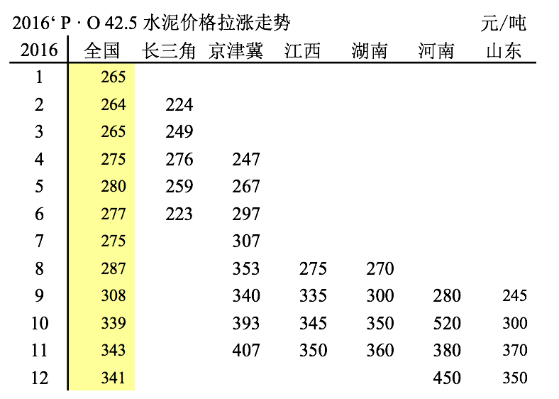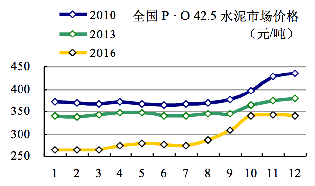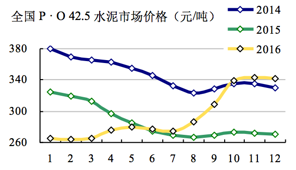 2016年已近年關(guān),年初年末水泥價(jià)格兩重天,水泥價(jià)格是衡量市場(chǎng)好還的晴雨表。年初價(jià)格265元/噸,是2005年以來價(jià)格最低一年,并且首度跌破300元/噸;價(jià)格上行壓力山大。