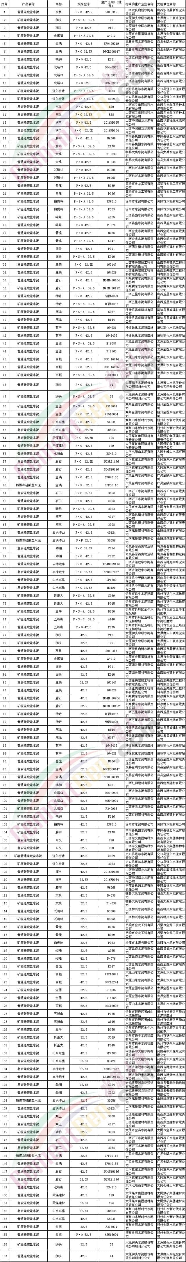 附二:山西省產(chǎn)品質(zhì)量監(jiān)督抽查合格水泥產(chǎn)品及生產(chǎn)經(jīng)銷(xiāo)企業(yè)名單