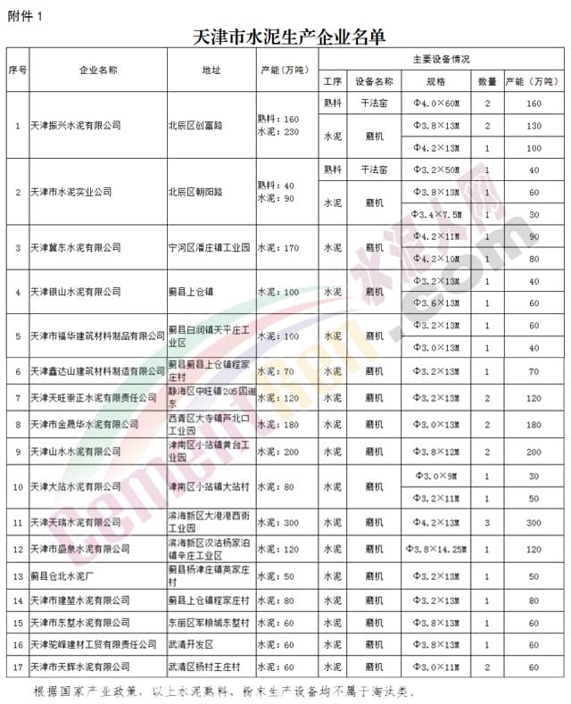 附件:天津市水泥生產(chǎn)企業(yè)名單