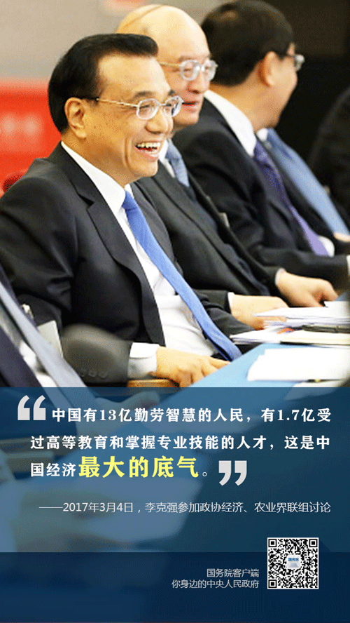 1 “中國有13億勤勞智慧的人民,有1.7億受過高等教育和掌握專業(yè)技的人才,這是中國經(jīng)濟(jì)最大的底氣。”