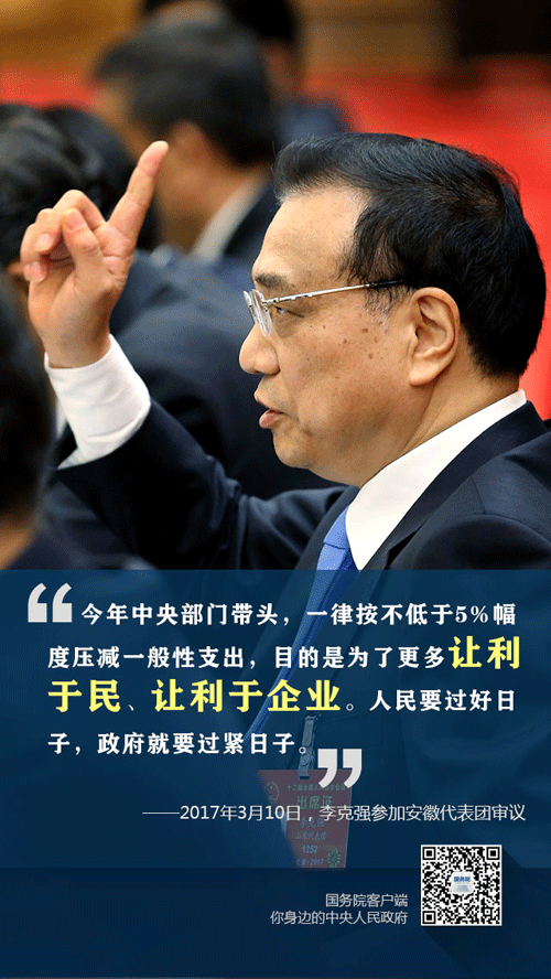 6 “今年中央部門帶頭,一律按不低于5%幅度壓減一般性支出,目的是為了更多讓利于民、讓利于企業(yè)。人民要過好日子,政府就要過緊日子。”