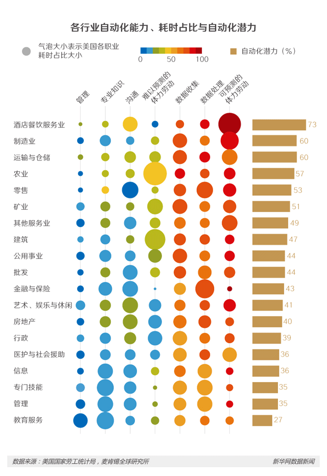 自二月以來,全國各地招聘如火如荼。人力市場雖供需兩熱,但就業(yè)壓力大、人力成本高、招工難、就業(yè)難的矛盾依舊不容忽視。除了經(jīng)濟(jì)發(fā)展的客觀因素外,人工智能低調(diào) “入侵”的威力已開始顯現(xiàn),部分自動化潛力較大行業(yè)的就業(yè)人數(shù)已經(jīng)出現(xiàn)下降趨勢。