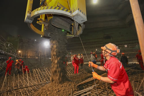 3月16日零時(shí)30分,隨著纜機(jī)將第一罐混凝土下料至8號壩段倉面,烏東德水電站大壩首倉低熱硅酸鹽水泥混凝土正式開始澆筑。這標(biāo)志著國產(chǎn)低熱水泥由部分壩段應(yīng)用成功實(shí)現(xiàn)300m級雙曲拱壩全壩應(yīng)用,烏東德水電站也將成為國內(nèi)外首個(gè)全壩使用低熱水泥的水電工程。