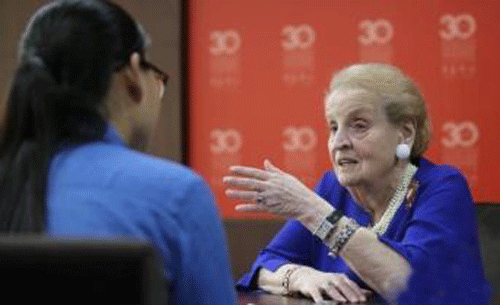 “美中兩國擁有迥異的政治制度、經(jīng)濟(jì)發(fā)展模式和文化背景,但越是這樣,當(dāng)回溯歷史時(shí),就越能體會(huì)到在過去45年里,雙方強(qiáng)調(diào)求同存異、互利共贏是多么難能可貴。”馬德琳·奧爾布賴特,美國歷史上第一位女國務(wù)卿,曾見證并親自參與推動(dòng)中美兩國關(guān)系的不斷發(fā)展。如今已屆耄耋之年的她依然十分關(guān)注中美兩國的互動(dòng)與未來雙邊關(guān)系的發(fā)展。