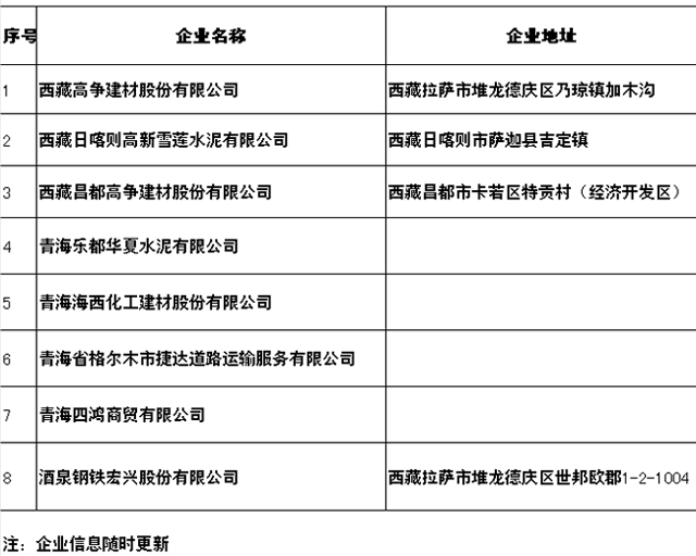 目前,已有6家區(qū)內(nèi)外水泥、鋼材、民爆品企業(yè)有意向參與重點項目建材需求對接(詳見附件),現(xiàn)將各重點項目單位聯(lián)系人、聯(lián)系方式和區(qū)內(nèi)外水泥、鋼材、民爆品企業(yè)在藏地址、聯(lián)絡(luò)人和聯(lián)絡(luò)方式,在西藏自治區(qū)發(fā)展改革委、西藏自治區(qū)工業(yè)和信息化廳、西藏自治區(qū)住房和城鄉(xiāng)建設(shè)廳網(wǎng)站上予以公布,各重點項目建設(shè)單位可與建材生產(chǎn)、經(jīng)銷商自行對接,也可自行聯(lián)系其它供貨企業(yè),訂貨結(jié)果必須于3月10日前報自治區(qū)重點辦。