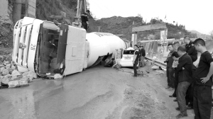 昨日(4月18日)下午3點(diǎn)鐘左右,巫山龍門大橋往該縣騾坪鎮(zhèn)方向約300米處發(fā)發(fā)生一起慘烈車禍,一輛側(cè)翻的水泥罐車將一輛寶馬轎車的車頭壓扁,寶馬車司機(jī)當(dāng)場身亡,罐車司機(jī)受傷。