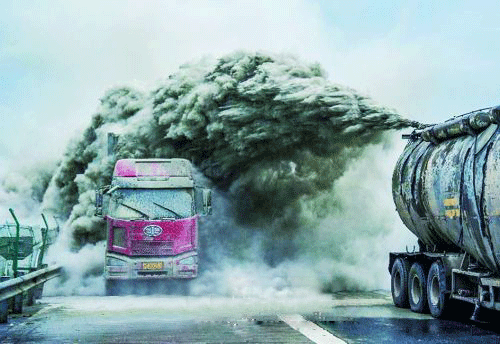 雖然已經(jīng)過去很久,但是說起拍照當(dāng)天的情景,姜豪仍然記憶猶新。那天他和同事接到高速路段上發(fā)生緊急事故的報(bào)警后,迅速趕到事故現(xiàn)場?,F(xiàn)場起火的貨車??吭谟猜芳缟?,車廂里不斷有黃色濃霧冒出,還夾雜著黑煙和火苗。