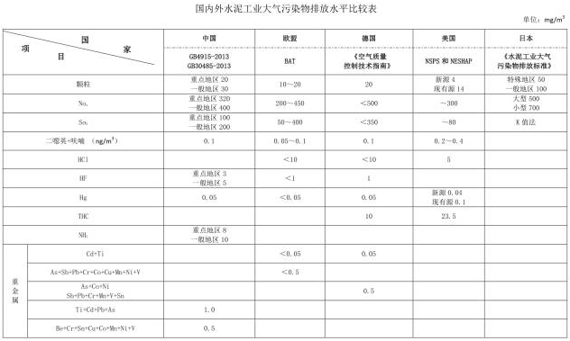 2、重慶頒布的《水泥工業(yè)大氣污染物排放標(biāo)準(zhǔn)》顆粒物、Nox、So2排放控制已達(dá)到國際上歐盟、德國的先進(jìn)控制水平(詳見下表)。