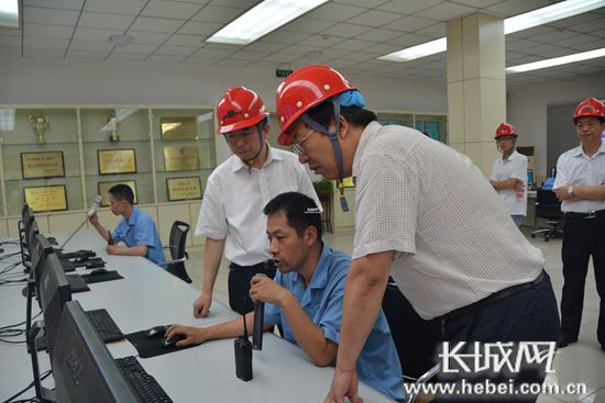金隅鼎鑫公司總經(jīng)理魏衛(wèi)東(左一)陪同省總工會領導調(diào)研公司中控室