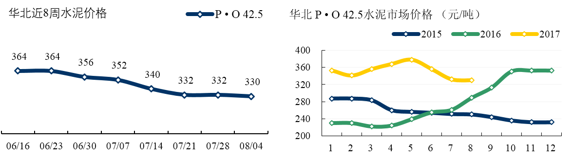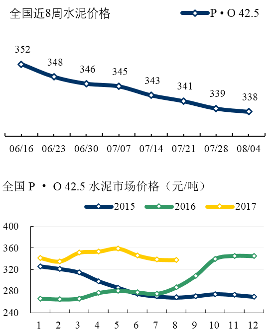 相較于上周,水泥價格有漲有跌。海南地區(qū)由于雨水天氣減少,下游需求有所恢復,價格上調(diào)20元/噸,低標號價格主要是浙江部分市場推漲,但高標號散裝價格仍普遍走低。 由于雨水天氣影響,需求欠佳,華北、華東、兩湖和西南多地散裝價格明顯走低。