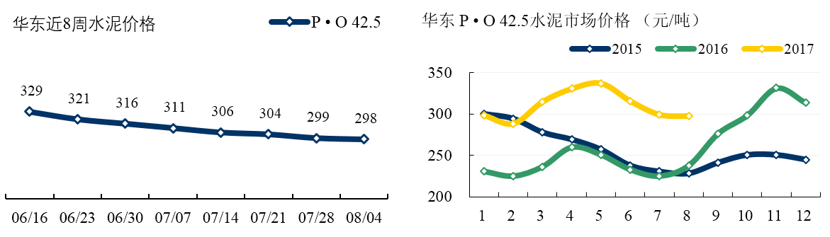 華東: 山東試圖喊漲止跌,但省內(nèi)陰雨天氣持續(xù),水泥需求不足,企業(yè)出貨欠佳。 浙江杭州地區(qū)主導企業(yè) 7 月 26 日起低標號水泥價格上調(diào) 20-30 元/噸,但全省高標號散裝水泥價格本周仍未企穩(wěn)。臺風過境影響下,降雨天氣導致多地水泥出貨壓力增加,高標水泥漲價計劃因此有所延后。福建福州等沿海地區(qū)受到臺風影響,降雨量較多,水泥需求十分低迷,部分廠家水泥日銷量一度跌至正常水平 2-3 成。