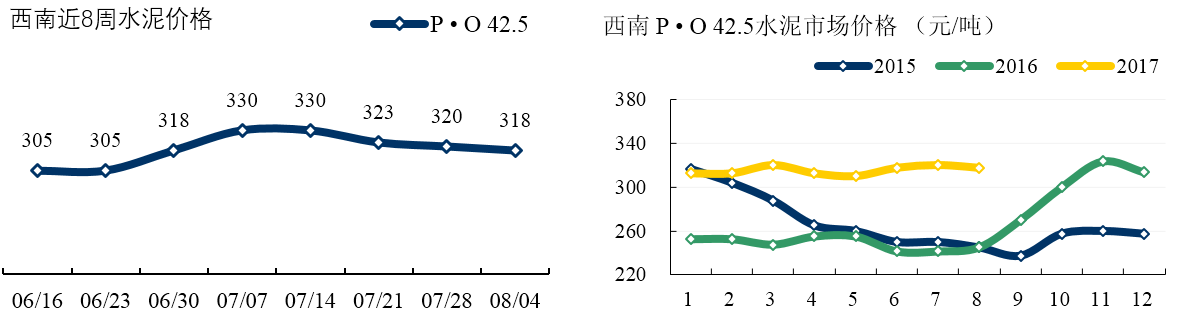 西南: 四川受環(huán)保檢查影響,成都及周邊部分房地產(chǎn)工地及攪拌站停產(chǎn)。但各企業(yè)并未強制停產(chǎn),目前水泥供應尚較充裕。重慶雖然高溫天氣持續(xù),但主導企業(yè)出貨仍在正常水平 7-8 成,近期企業(yè)穩(wěn)價意圖十分明顯。本周雨水天氣開始減少,昆明及周邊廠家水泥出貨小幅回升。