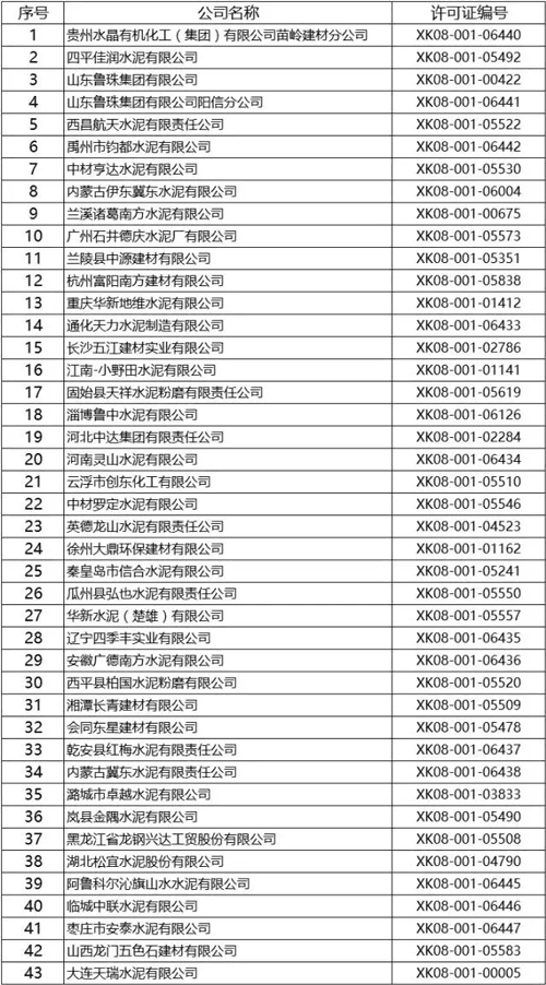 8月11日,國(guó)家質(zhì)檢總局發(fā)布最新獲證企業(yè)名單,其中涉及43家水泥企業(yè),其中包括延續(xù)、延續(xù)名稱許可范圍變更、發(fā)證等內(nèi)容。水泥人網(wǎng)將會(huì)在第一時(shí)間將最新獲證企業(yè)名單予以發(fā)布。
