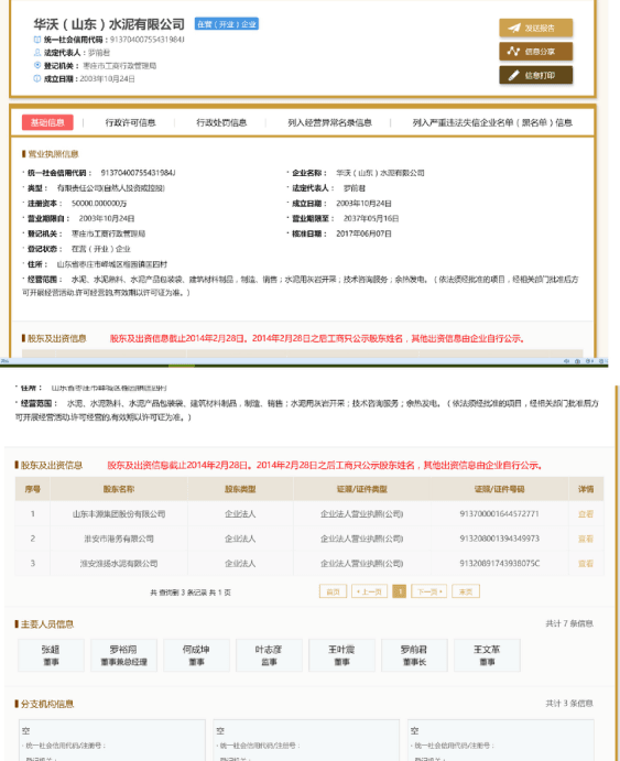 華沃(山東)水泥有限公司與華沃(棗莊)水泥有限公司無任何關(guān)聯(lián)關(guān)系。沃特蘭亭水泥有限公司已于 2017 年 6 月將持有的華沃(山東)水泥有限公司的股權(quán)全部對外轉(zhuǎn)讓,且于 2017 年 6 月 7 日完成華沃(山東)水泥有限公司股東及法定代表人的工商變更登記。自 2017 年 6 月起,沃特蘭亭水泥有限公司已經(jīng)不參與華沃(山東)水泥有限公司的經(jīng)營管理,此后華沃(山東)水泥有限公司的任何經(jīng)營活動均與沃特蘭亭水泥有限公司無關(guān)。如對華沃(山東)水泥有限公司的股東及法定代表人變更有任何疑問的,可以在國家企業(yè)信用信息公示系統(tǒng)進行查詢(http://www.gsxt.gov.cn/corp-query-homepage.html)。