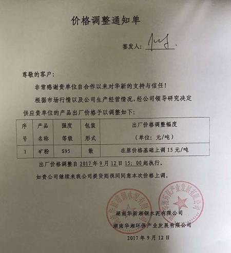 自上周日(10日)起湖南湘潭區(qū)域內(nèi)主導(dǎo)水泥企業(yè)各品種水泥均調(diào)50元/噸。部分企業(yè)發(fā)布通知稱熟料同期上調(diào)50元/噸。通知原文如下: