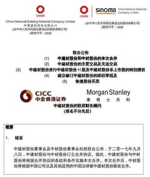 而在公告前一天7日上午,中國建材、中材股份在香港停牌,等待根據(jù)香港收購及合并守則刊發(fā)內(nèi)幕消息。隨后,中建材集團(tuán)旗下多家上市公司像約好了似的,齊齊停牌,中國巨石、中材國際、寧夏建材、祁連山上交所停牌,北新建材、天山股份、中材科技深交所停牌,原因還都是擬披露重大事項(xiàng),引發(fā)外界無數(shù)猜想,“中國神材”的合并重組時(shí)代來臨!