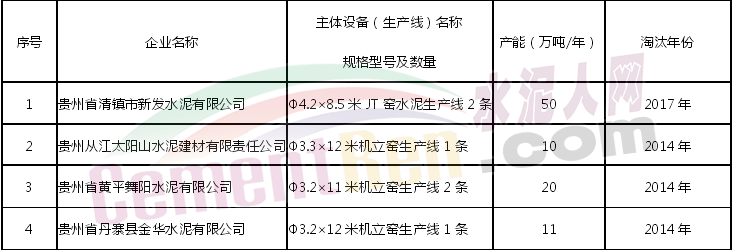 備注:通過企業(yè)間收購兼并,貴州省清鎮(zhèn)市新發(fā)水泥有限公司和貴州茂鑫水泥有限責(zé)任公司為同一實(shí)際控制人;淘汰項(xiàng)目產(chǎn)能總量為91萬噸/年,其中90萬噸/年用于置換。