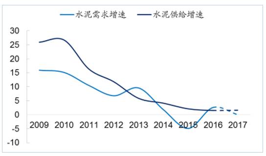 水泥行業(yè) 2009 年以來供求增速變動(dòng)情況
