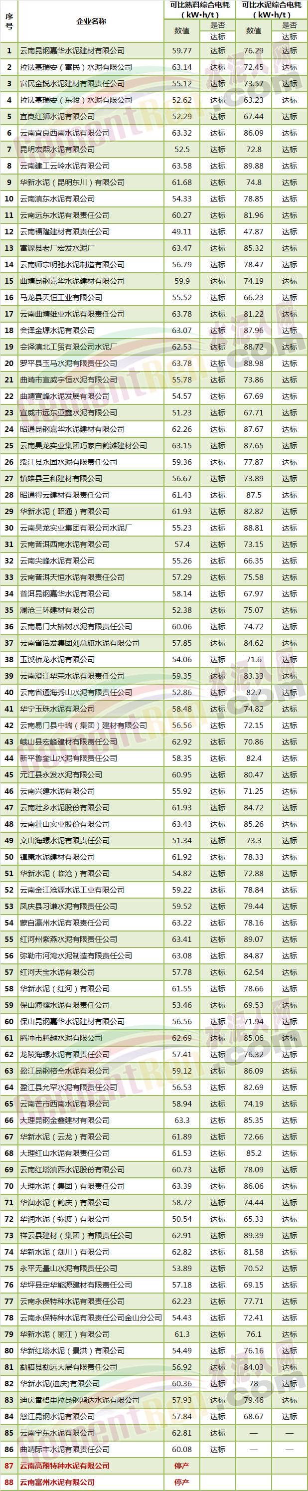 【水泥人網(wǎng)】云南省水泥企業(yè)2016年產(chǎn)品可比綜合電耗情況