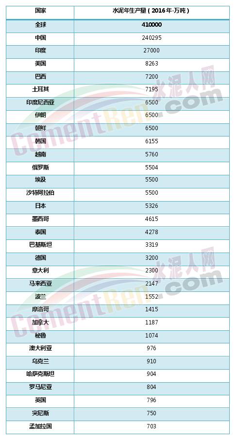附表1:年水泥產(chǎn)量在700萬噸以上的國家