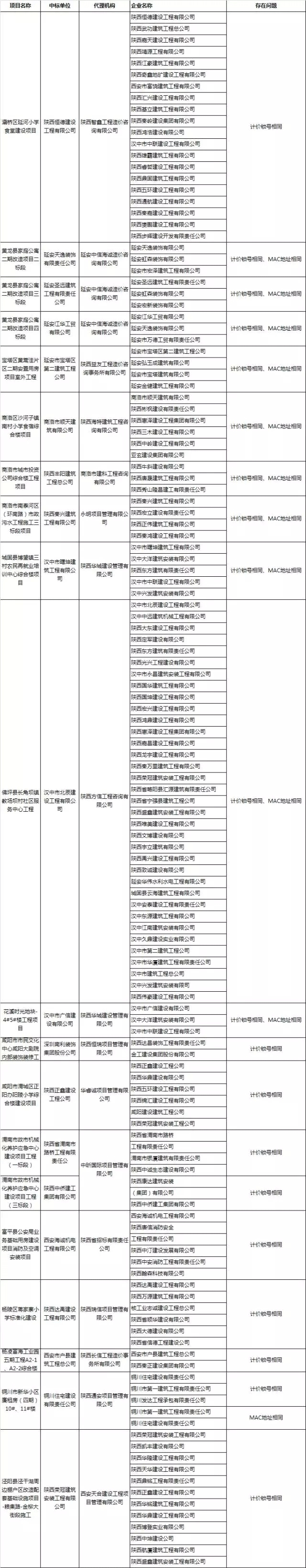 此次督查中首次使用信息化數(shù)據(jù)分析手段,對(duì)2015年月1日以來(lái),國(guó)有投資房建市政工程及部分專業(yè)工程為主的建設(shè)工程項(xiàng)目中串通投標(biāo)行為進(jìn)行認(rèn)定。經(jīng)分析比對(duì),存在不同投標(biāo)單位的計(jì)價(jià)鎖號(hào)相同或MAC地址相同等行為?,F(xiàn)對(duì)目前查處的涉嫌串通投標(biāo)企業(yè)名單予以公布。