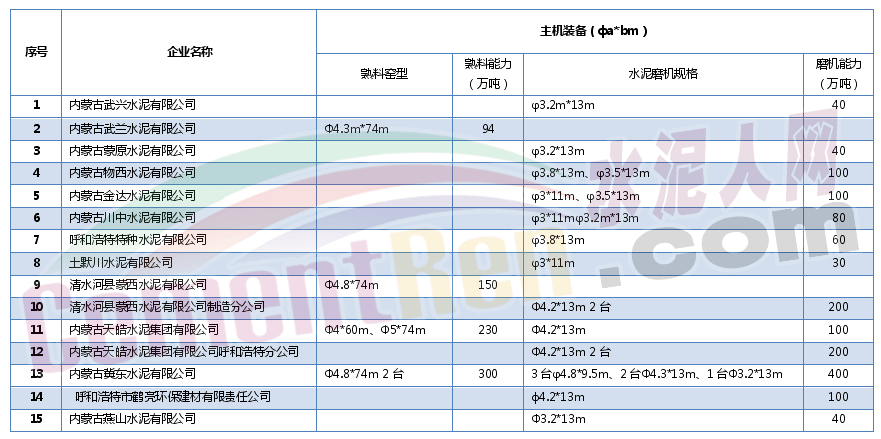 表1:呼市水泥企業(yè)