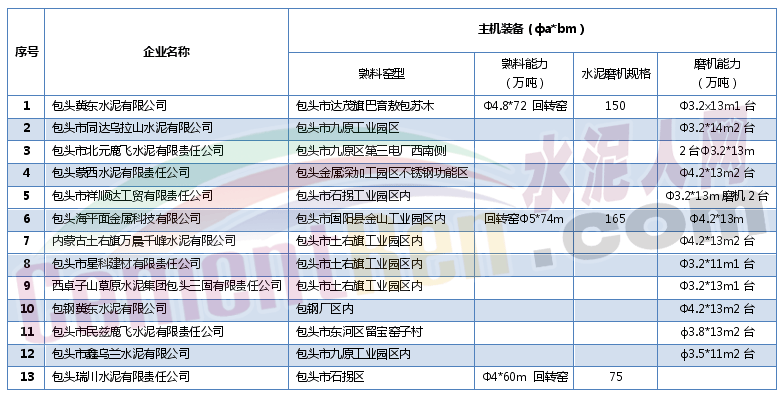 表2:包頭市水泥企業(yè)