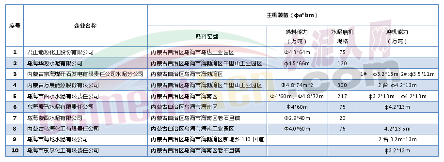 表3:烏海市水泥企業(yè)