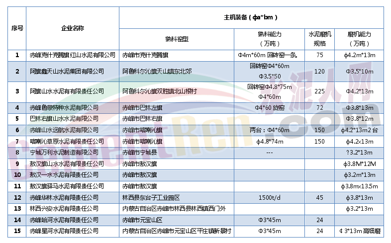表4:赤峰市水泥企業(yè)