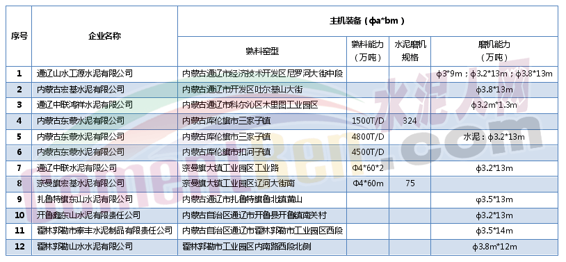 表10:興安盟水泥企業(yè)