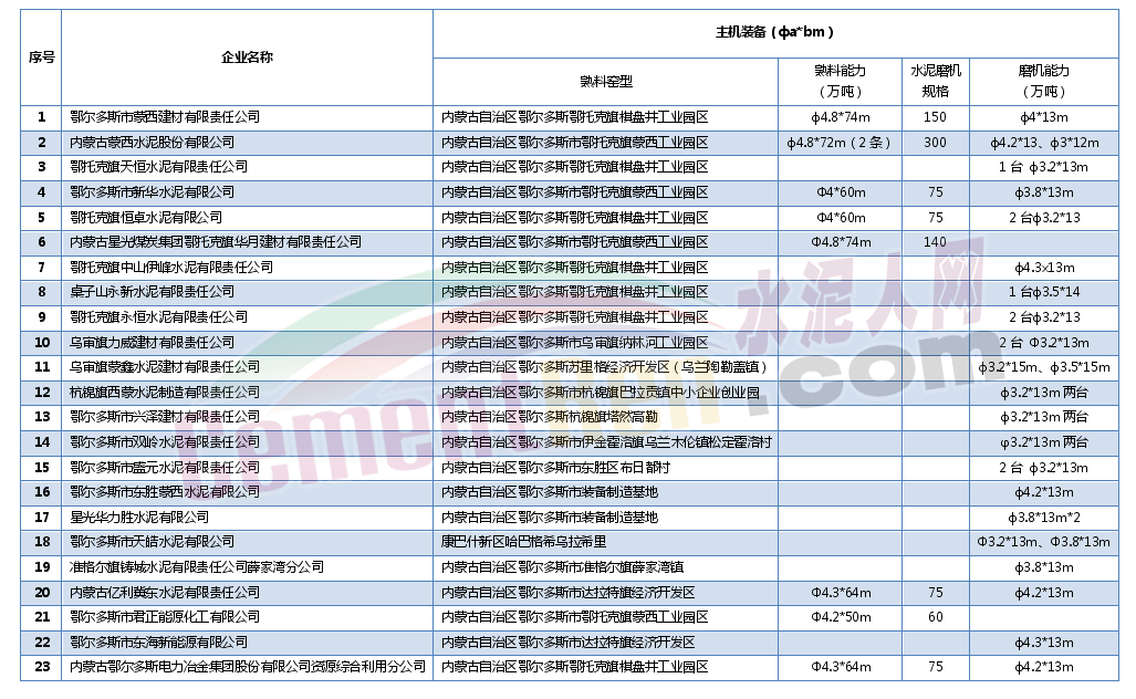 表6 鄂爾多斯市水泥企業(yè)