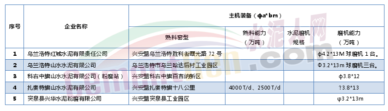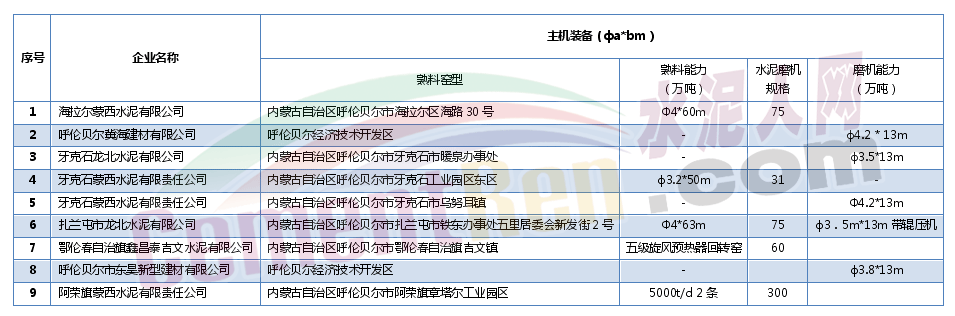 表7 呼倫貝爾市水泥企業(yè)