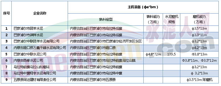 表8:巴顏淖爾市水泥企業(yè)