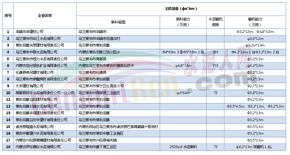 表9:烏蘭察布市水泥企業(yè)