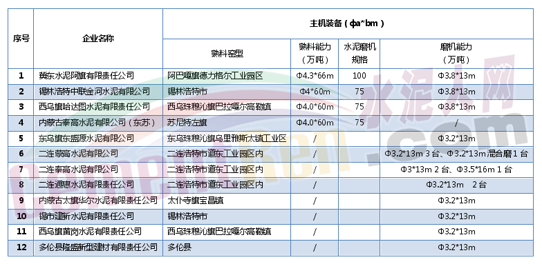 表11:錫林郭勒水泥企業(yè)