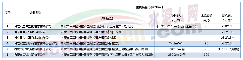 表12:阿拉善水泥企業(yè)