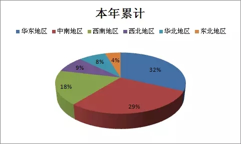 1-9月各大區(qū)水泥產(chǎn)量占比
