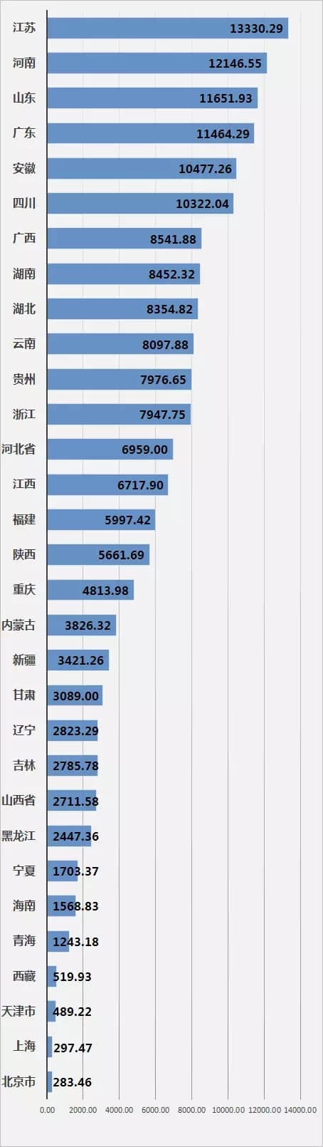 按照各個省市區(qū)水泥產(chǎn)量對比,江蘇省是前9個月水泥產(chǎn)量最多的省份,產(chǎn)量達13330.29萬噸;其次是河南省,水泥產(chǎn)量12146.55萬噸,第三名是山東省,水泥產(chǎn)量11651.93萬噸,緊隨其后的是廣東省、安徽省、四川省,這些省份前9個月的水泥產(chǎn)量都超過億噸大關。