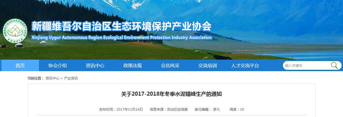關(guān)于2017-2018年冬季水泥錯(cuò)峰生產(chǎn)的通知