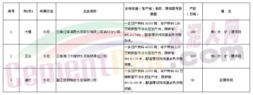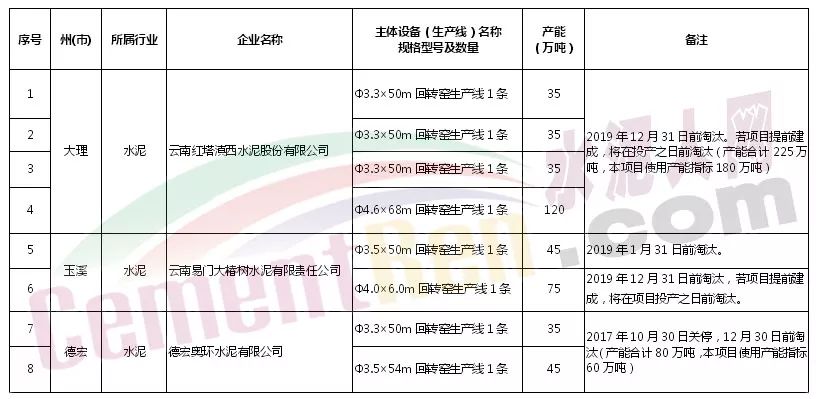 【水泥人網(wǎng)】按照《國務院關于化解產(chǎn)能嚴重過剩矛盾的指導意見》(國發(fā)〔2013〕41號)、《國務院辦公廳關于促進建材工業(yè)穩(wěn)增長調(diào)結(jié)構增效益的指導意見》(國辦發(fā)〔2016〕34號)及《工業(yè)和信息化部關于印發(fā)部分產(chǎn)能嚴重過剩行業(yè)產(chǎn)能置換實施辦法的通知》(工信部產(chǎn)業(yè)〔2015〕127號)、《工業(yè)和信息化部國家發(fā)改委關于印發(fā)水泥行業(yè)部分項目處理意見的通知》(工信部聯(lián)原〔2016〕118號)、《云南省人民政府辦公廳關于嚴格落實產(chǎn)能置換著力化解水泥行業(yè)產(chǎn)能過剩矛盾的實施意見》(云政辦發(fā)〔2017〕44號)的有關要求,云南紅塔滇西水泥股份有限公司賓川分公司日產(chǎn)6000噸、云南易門大椿樹水泥有限責任公司日產(chǎn)4000噸、盈江昆鋼榕全水泥有限公司日產(chǎn)2000噸新型干法水泥熟料建設項目產(chǎn)能置換方案已經(jīng)省人民政府確認,現(xiàn)予公告,詳見附件。