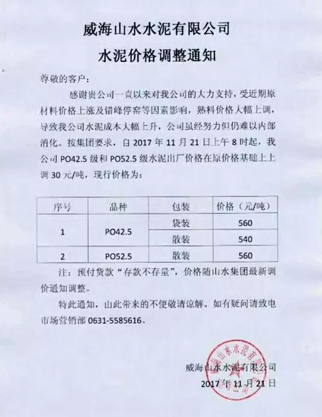 價(jià)格通知函還特別備注,預(yù)付貨款“存款不存量”,水泥價(jià)格隨山水集團(tuán)最新調(diào)價(jià)通知調(diào)整。