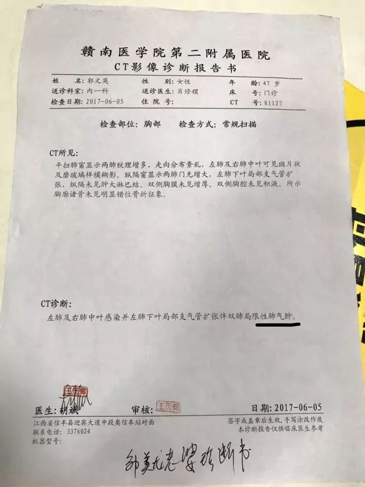 今年6月,家住水泥廠附近的居民鄒美龍老婆郭文英女士在醫(yī)院CT查出肺氣腫,同年9月份其父親鄒征瑞也因阻塞性肺病在縣人民醫(yī)院住院,他說:”再這樣長久下去,我們恐怕都要得肺癌”。