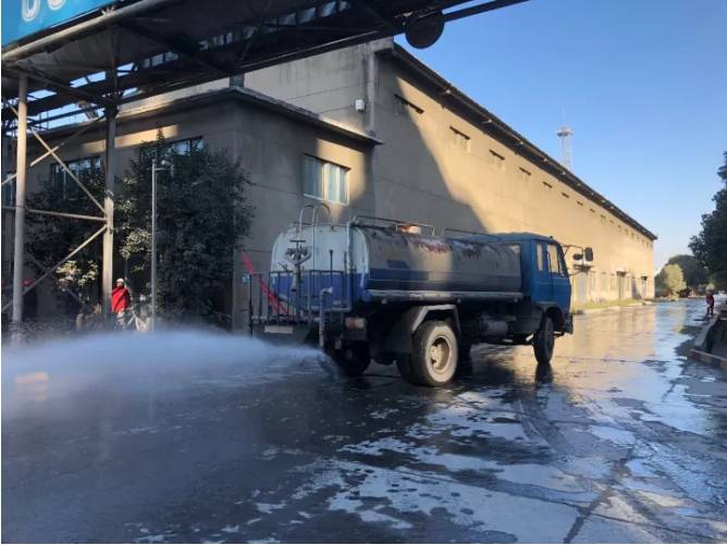 △廠區(qū)內(nèi)一臺(tái)灑水車(chē)正在灑水