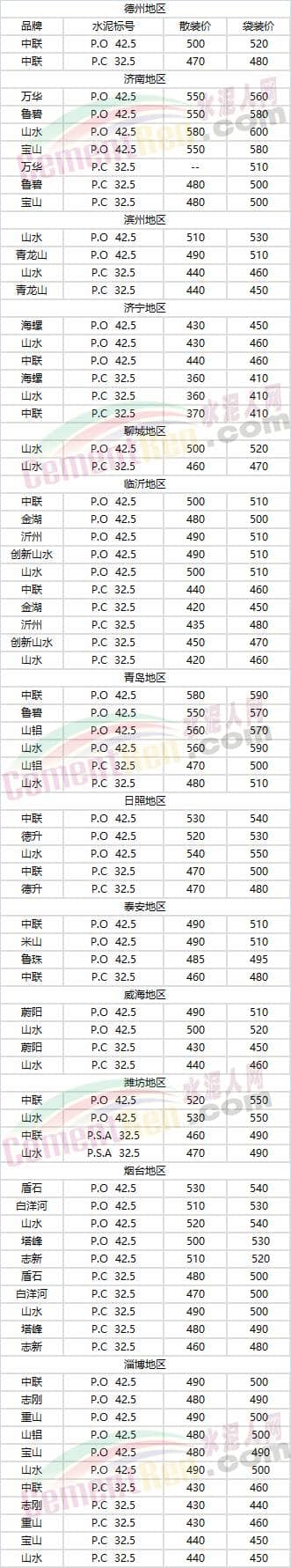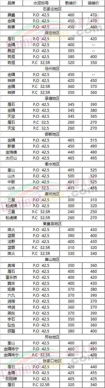 河南省部分地區(qū)水泥市場(chǎng)參考價(jià)